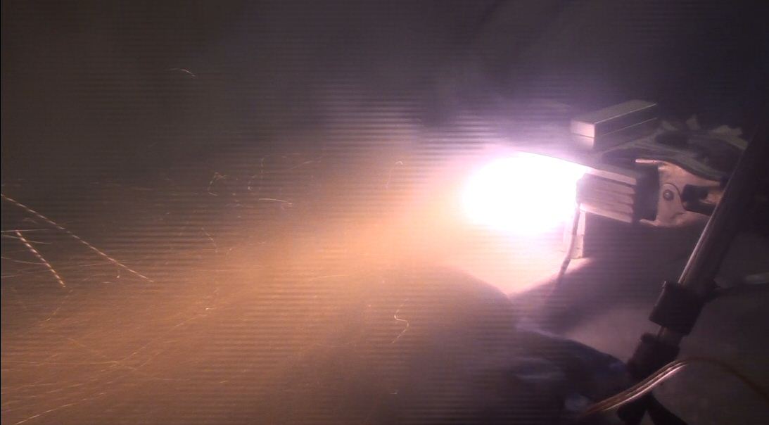 After the motor detonations on test 17 and 18 we build a new MHD generator. This one was designed to handle larger rocket motors. We did the first test tonight. Test 19 went great. Lots of power and lots of data. However, (there’s always a however) when we disassembled the unit after the firing we found cracks all through the ceramic. We always expect to see a few little crack due to thermal shock. The unit’s core temperature goes from ambient to 2000 degrees F in about a second. This time the unit was ruined, cracks everywhere going clean through. We start building the next unit tomorrow, but this time out of porcelain.