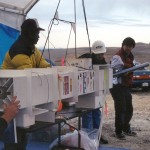 We have flown the PSL Rocket five times before. Here’s some pics from those tests. At the time we were painting all our rockets black so they would show up on the bright white desert floor. The long white boxes are the launch platforms for when the rocket was launched as a rockoon.