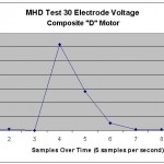 We conducted four firings of the Mini-MHD generator Saturday. Test 29 was a baseline run for the new datalogger (weird data). Test 30 was with a composite motor and the old datalogger. We want to start exploring how power varies with motor chemistry. Test 31 was another firing with the new datalogger, (no data). After more jiggering and poking Test 32 was ran with the new datalogger and yea good data!