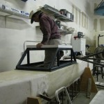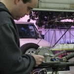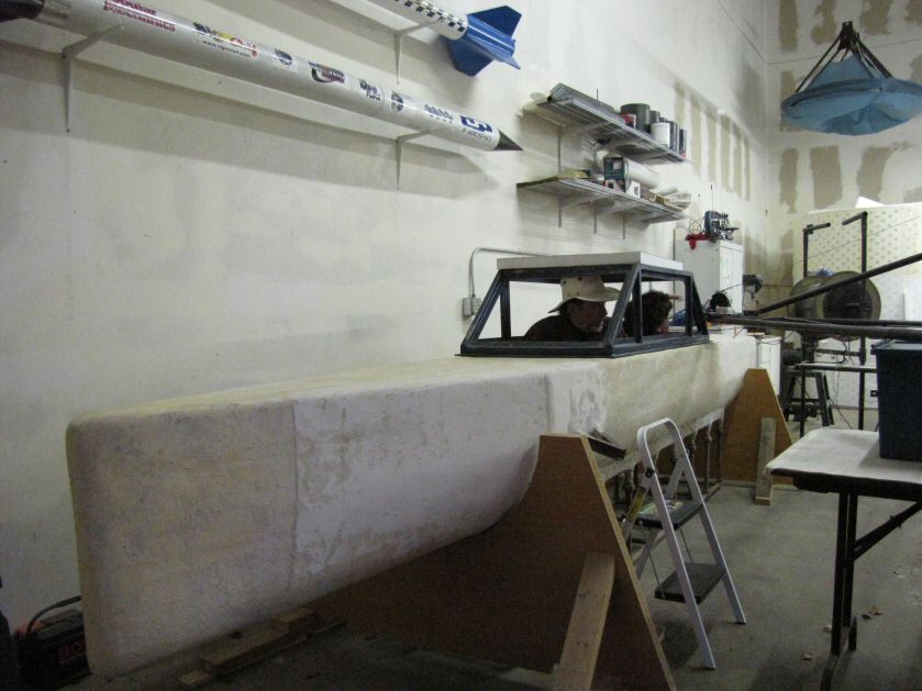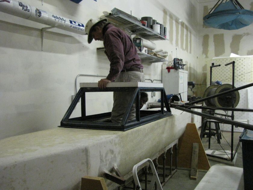 The Bellavia (submarine) was pressed into service for the space cause. We used her as an analog to test hatch diameters for the high altitude crew module. We also need to build a hatch for the sub and want to share a few components between them. We cut a hole in a foam sheet and proceeded to crawl in and out of it, (ok, I admit it, I was making submarine noises while at the time…).