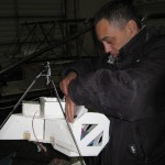 Anthony working on a telemetry system and Kevin mounting a balloon release system on Away 48.