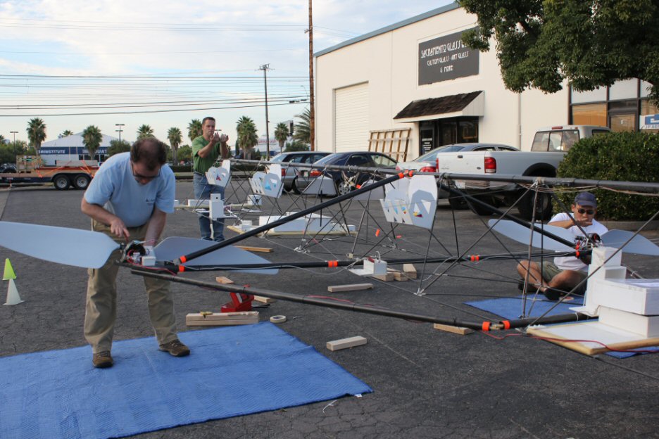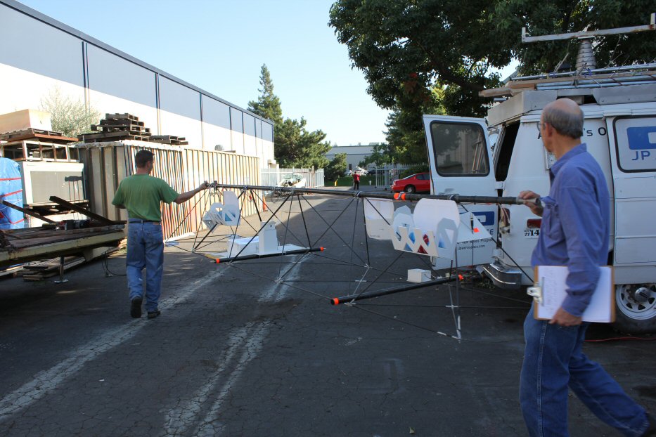Tandem has been in the shop for three years. Yesterday she got outside a bit to get some fresh air. This was the last big step. We disassembled Tandem as we would for shipping,took her out to the front parking lot, reassembled her and ran full system tested. This was both an engineering and a training exercise. It was a very long and hot day for the team, but they really worked out all the little details and got Tandem ready for flight.