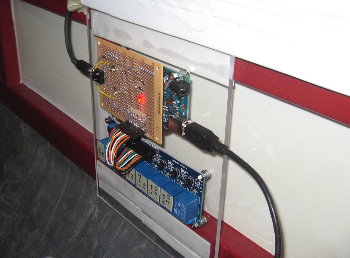 This is one of the secondary computers in Bellavia. The subs computer system is all distributed architecture. This one is an Arduino Mega. It takes all the commands coming from the PC and passes them to all the external computer (6) via an I2C network. It also handles some internal system like lights and life support.