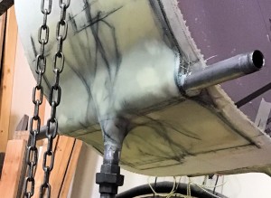 We had changing the mass of the submarines keel weight. The hull came in underweight and we changed the size of the internal flooded area. This means the keel attachment exceeds the original design load. It calcs well within the range, but we need to be sure. So we built a new hull test section to test it.