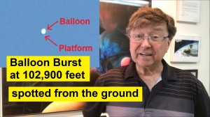 We caught the burst of the Away 132 balloon from the ground. It was straight overhead when it burst at 102,900 feet.