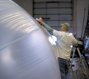 Last Saturday we conducted the first inflation of the Ascender 36 outer envelope. We only ran it to 80 percent volume just to make sure we sewed it right. Next comes the installation of the internal truss structures.