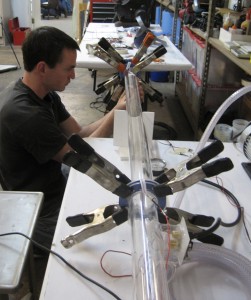 The hypersonic shock tube is progressing in leaps and bounds (or should I say waves?). We redesigned the sensors and are now getting much cleaner output. Last Saturday we reached mach 2.4. As soon as we’re over mach 3 we will start the active drag reduction tests.