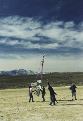 It was a cold desert morning on Dec. 8, but that doesn't slow down this team. Here the group patiently fills the balloon until enough lift is obtained.