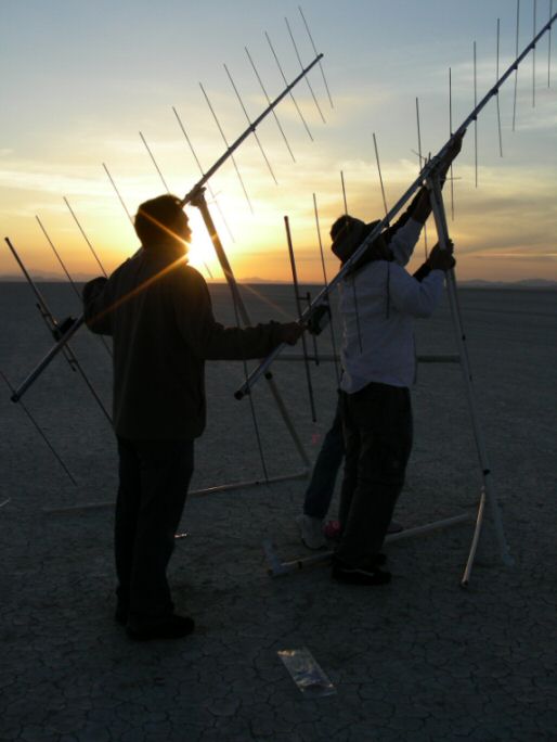 shot of assembling antennas in the desert.