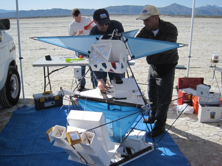 The Rocket launch systems (fire control, rocket motor heaters and launch detect) worked great. Just as a placeholder we used small 17 inch rocket as part of the test. The launch systems work the same as for a 17 inch rocket as they do for a 12 foot one. Including the small rocket gave us a change to work on procedures for live rockets as well. Away 45 and Away 46 each carried two rockets. On Away 44 we fired the rockets at low altitude, (11,000 feet). On Away 45 we ran the test at 80,000 feet. The second launch control system also worked prefect, however the rocket motors did not ignite. (little motor are very tricky to light at high altitude).